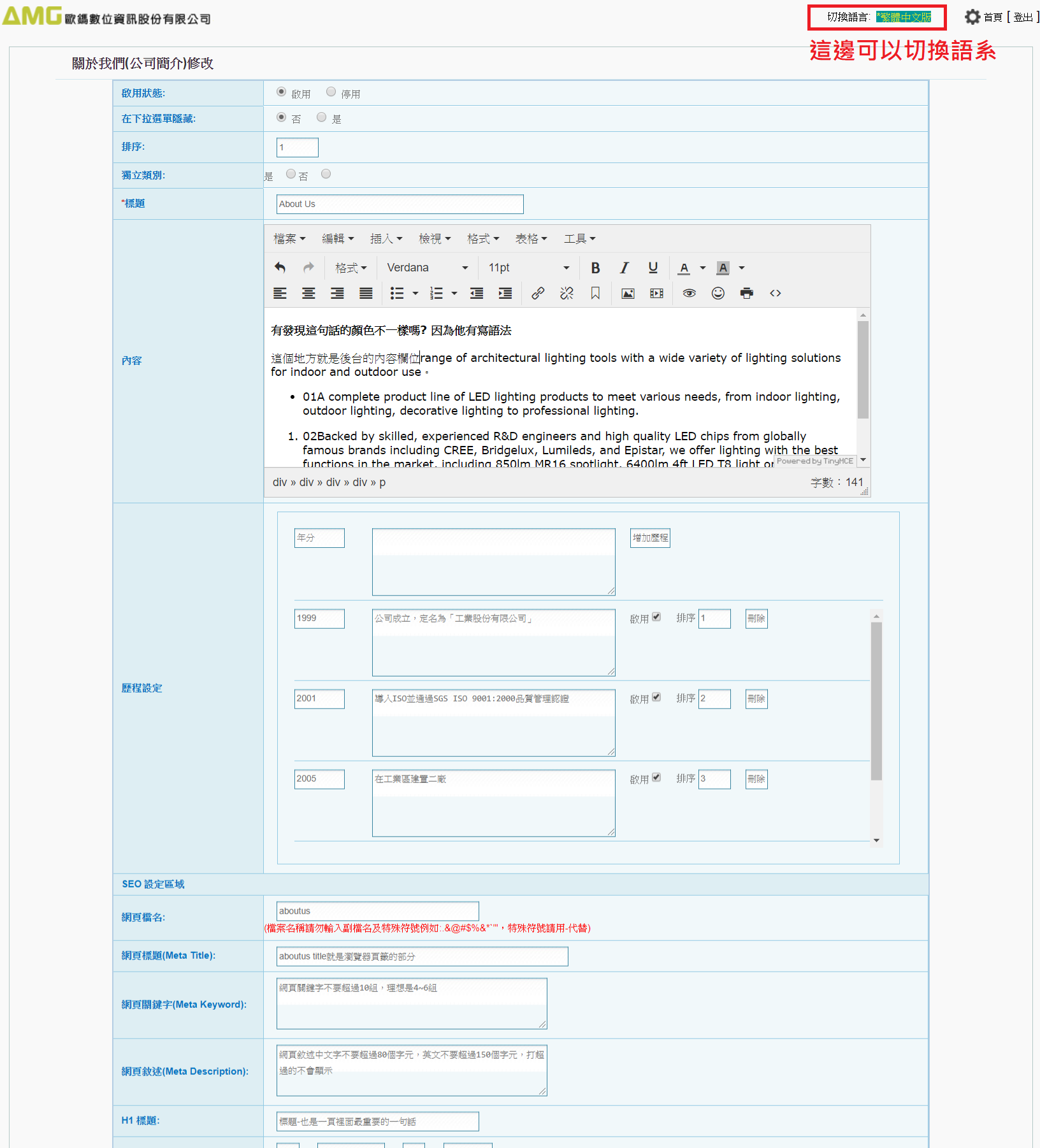 這個地方就是後台的內容欄位,這一頁設計師有處理過,所以要修改文字時最好先把原始碼複製起來